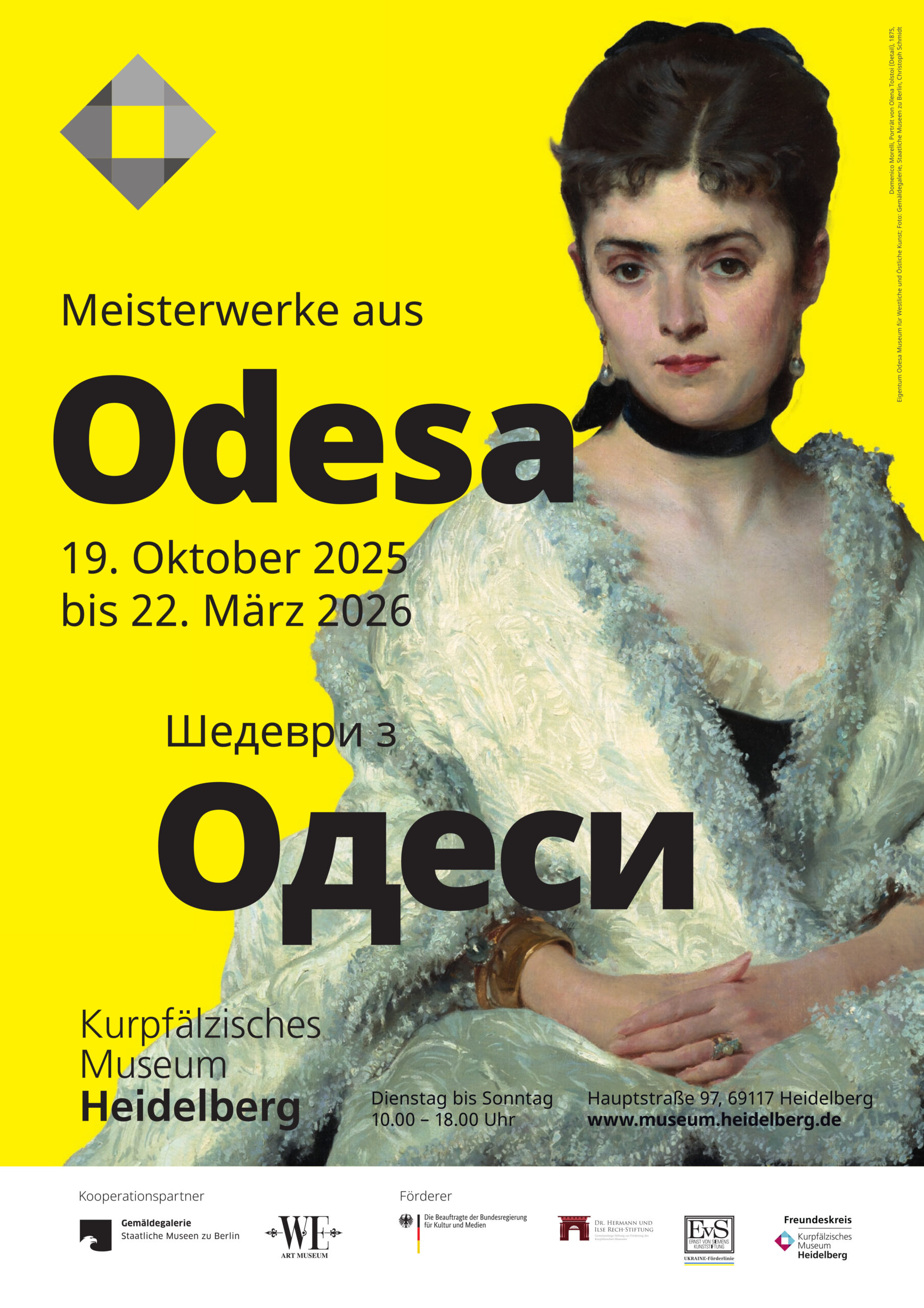 Die ukrainische Hafenstadt Odessa leidet schwer unter den Folgen des Krieges – auch ihr kulturelles Erbe ist bedroht. Dank einer beispiellosen Rettungsaktion konnten die wertvollsten Gemälde aus dem Museum für westliche und östliche Kunst Odessa gerettet und in Sicherheit gebracht werden. Nach ihrer erfolgreichen Präsentation in der Gemäldegalerie der Staatlichen Museen zu Berlin sind diese Meisterwerke nun in Heidelberg zu Gast.